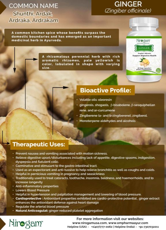 Ginger: A fragrant kitchen spice used widely in cooking and its popularity as a food, a spice, a flavor and as herbal medicine speaks for itself.
